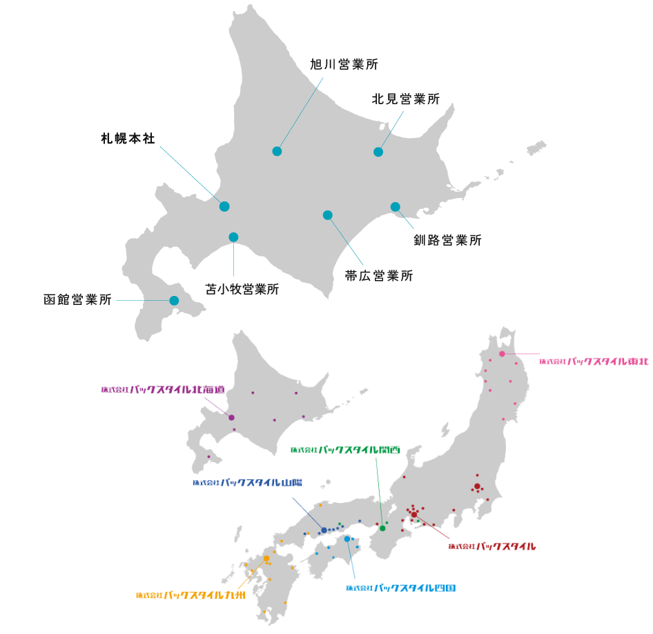 さらに「パックスタイルグループ」を活用した全国ネットワーク網により、北は北海道、南は九州・沖縄までの物流体制を確立しております。